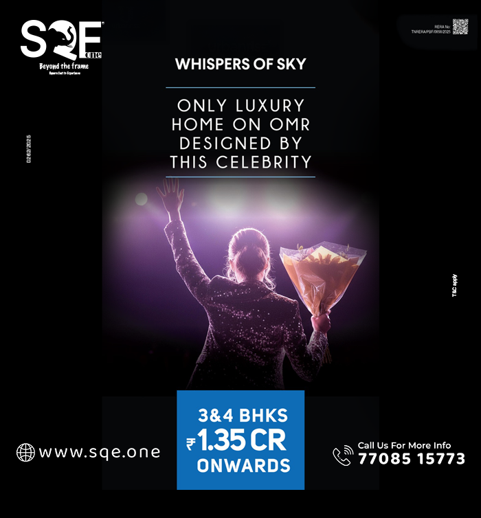 Whispers of Sky by Urbanrise is Chennai's first designer luxury residential project located at Sholinganallur, OMR. Offering spacious 3 & 4 BHK residences, this landmark development spans across 6.09 acres, Featuring grand balconies and enhanced privacy. With a 30,600 sq.ft. luxury clubhouse and exclusive rooftop experiences, Whispers of Sky truly redefines elite urban living. Situated in Chennai’s fastest-appreciating corridor, it is ideal for both end-use and investment.Welcome to the future of luxury living.